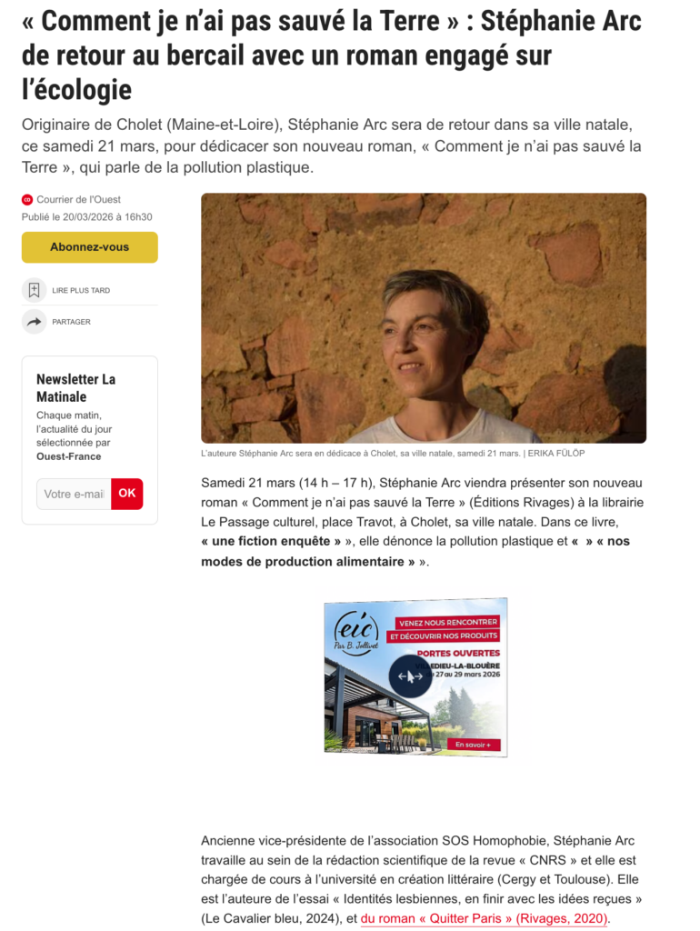 Published in Actualité Comment je n'ai pas sauvé la terre Création littéraire Médias / presse sur "Comment je n'ai pas sauvé…" Romans