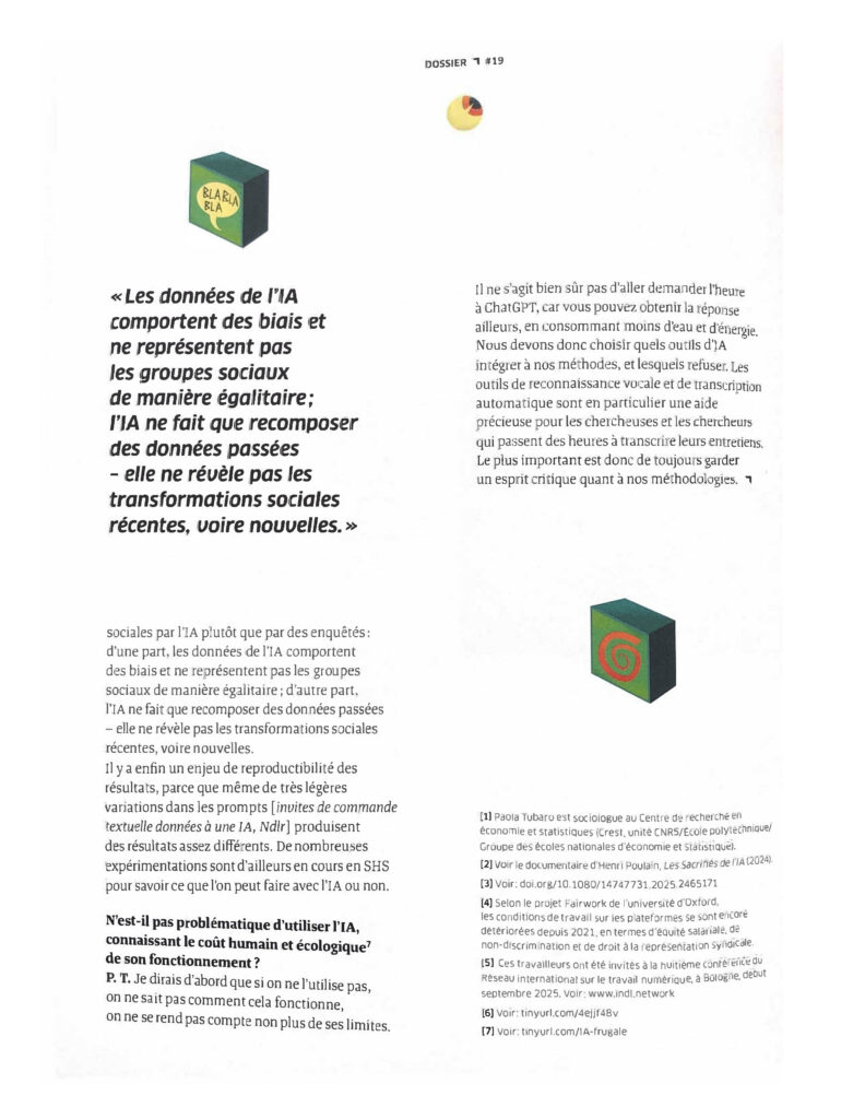 Entretien avec la sociologue Paola Tubabo pour “Carnets de science”, la revue du CNRS, sur les ouvier-ères de l’intelligence artificielle.